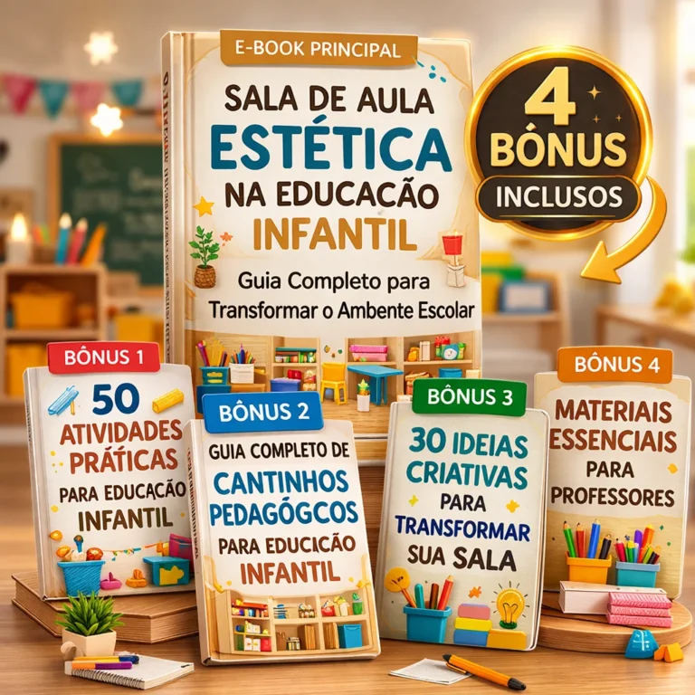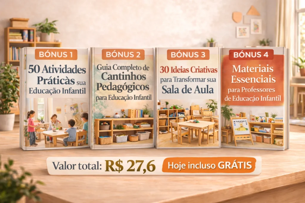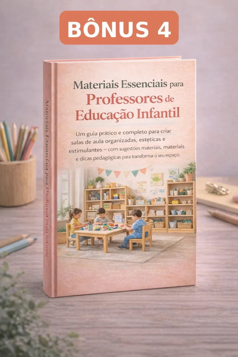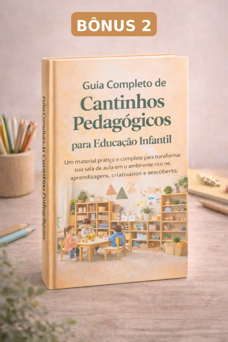 BÔNUS 2 - Guia Completo de Cantinhos Pedagógicos para Educação InfantilUm material prático que ensina passo a passo como organizar cantinhos pedagógicos dentro da sala de aula, criando um ambiente rico em aprendizagens, criatividade e exploração para as crianças. O guia apresenta orientações claras, sugestões de materiais, exemplos de atividades e estratégias pedagógicas para desenvolver autonomia, socialização e aprendizagem ativa na educação infantil.